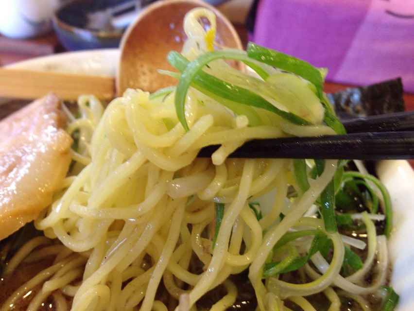 ゴマ油で和えられたネギをスープに沈めて、麺と絡めて・・・嗚呼~