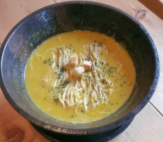 濃厚な豚骨スープに濃厚なカボチャを合わせたかぼちゃ豚骨。