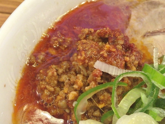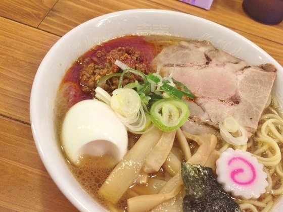 【辛肉ラーメン(大盛)】¥850+半熟玉子