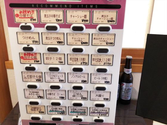 店外暖簾、店内暖簾をくぐると右に券売機。