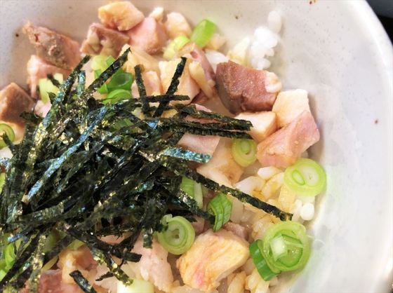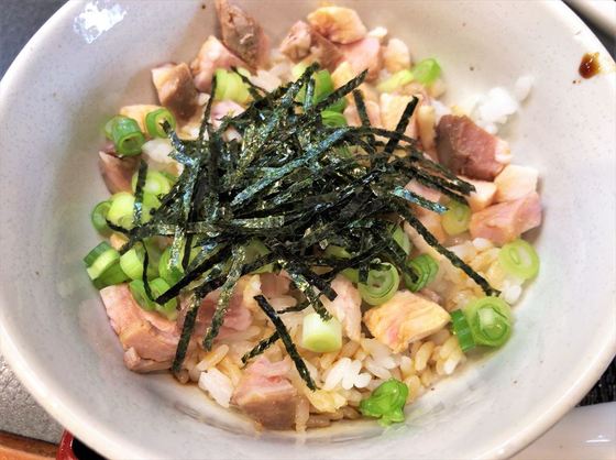 刻まれた豚、鶏のチャーシューに青ネギ、