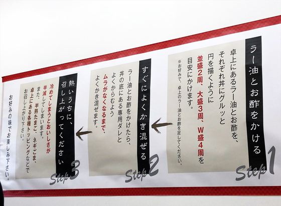 W盛りはラー油と酢を4周と書いてあるけど、