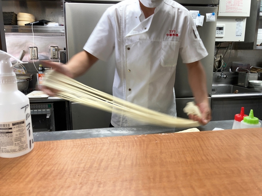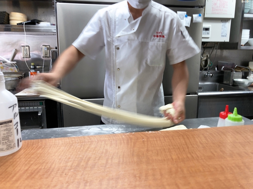 そこに泳ぐ目の前で打たれたばかりの麺、