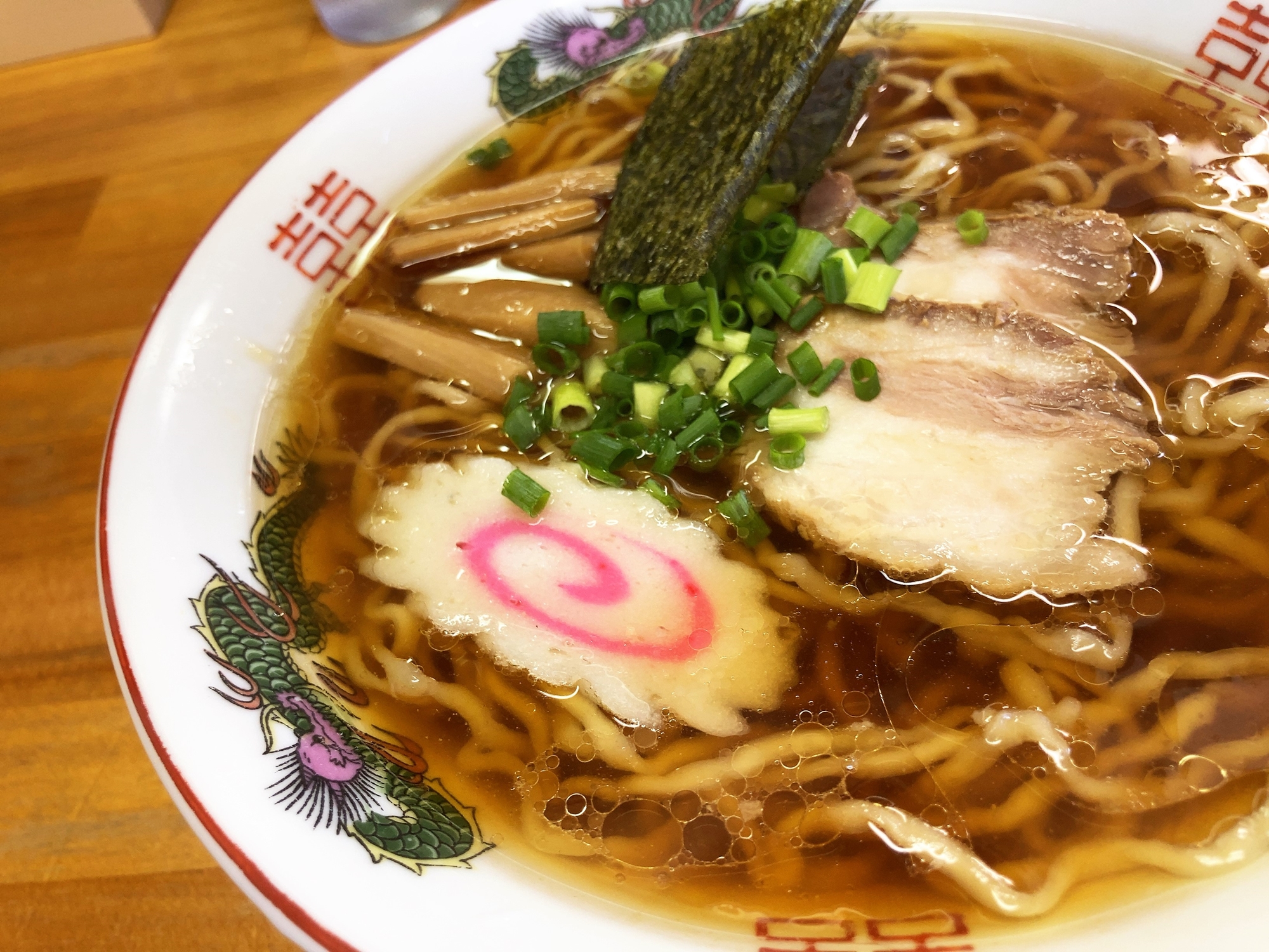 透明感のある醤油スープが広がる中、